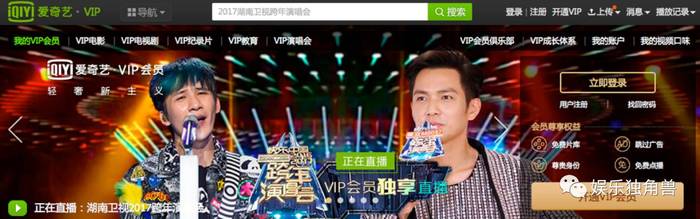 此次湖南卫视跨年晚会在芒果TV、爱奇艺双网VIP付费播出。如果说芒果TV是“自家人”,那么湖南卫视在众多视频网站中选择爱奇艺做版权分销,无疑是看重了爱奇艺在会员运营上,尤其是在年轻人群中的圈粉能力。