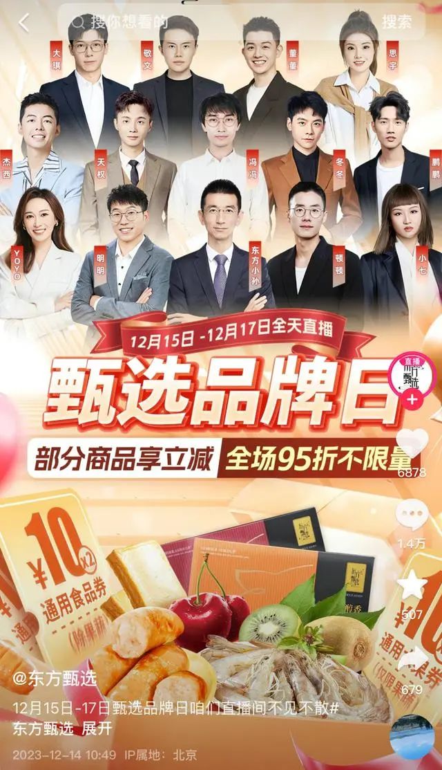12月14日,东方甄选品牌日的宣传海报上,董宇辉被彻底雪藏。