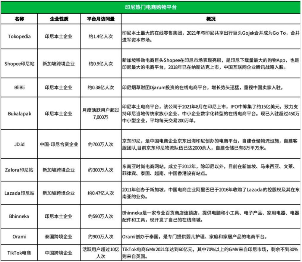 印尼本土电商平台除Tokopedia外还有BliBli、Bukalapak、Bhinneka等。