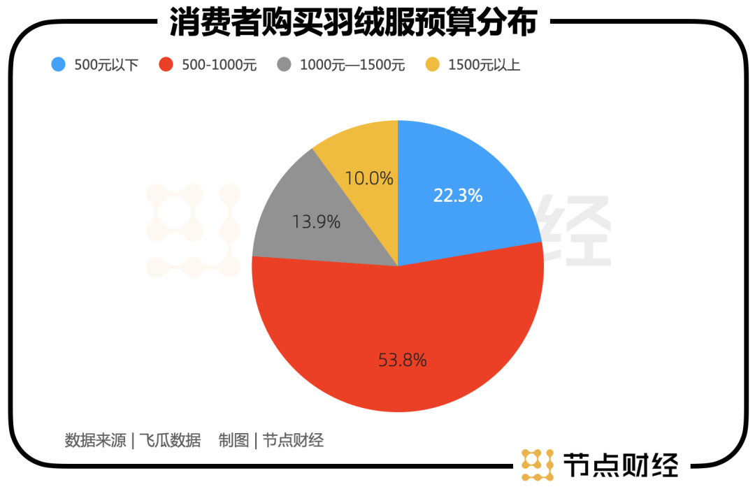 考虑到加拿大鹅、波司登等高端品牌的销售主要来自线下门店,实际千元以上售价的羽绒服销量占比会高于5%。当前尚未有关于羽绒服销售额价格段的详细统计,不过据飞瓜数据的一项“消费者购买羽绒服预算分布”调研显示,愿意购买千元以上羽绒服的消费者占比仅为25%。
