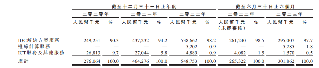 从收入来看,云工场科技收入主要由IDC解决方案服务、边缘计算服务、ICT服务及其他服务三部分构成,其中IDC解决方案服务是公司核心业务。2022年该业务实现收入5.39亿元,占公司收入比例为98.2%。