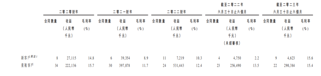 此外,公司老客户合同数量出现明显下滑,2020年公司老客户合同数量为34份,到2022年下降至24份。
