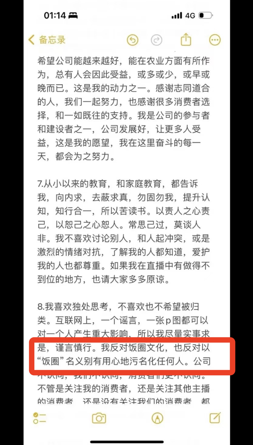 发酵两天后,东方甄选大家长俞敏洪终于站了出来。在“救火”声明中,他专门提到饭圈文化。对此,他的态度温和又圆滑。他表示,东方甄选不存在饭圈文化,只有喜欢东方甄选的网友粉丝,言语之间有意平息风波。