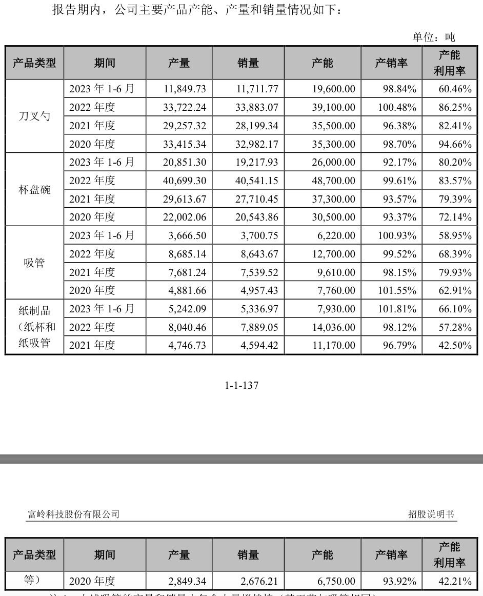不过从产能利用率数据的披露来看,2023年上半年富岭股份也并非满产状态,其中刀叉勺产能利用率为60.46%,杯盘碗位80.2%,吸管为58.95%,纸制品(纸杯和纸吸管)为66.1%。如何消化新增产能,也将是富岭股份所面临的课题。对此,公司也做了风险提示,表示若在募集资金投资项目建成后不能尽快达产或者不能通过产能消化增加营业收入等方式提高募投项目的盈利能力,则公司存在固定资产折旧增加而导致相关业务整体毛利率和净利润下降的风险。