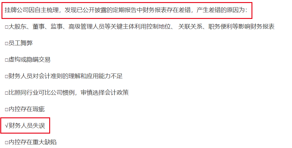 对此,公司解释称,是自查发现前期会计处理时存在会计差错,产生差错的原因则归为“财务人员失误”。