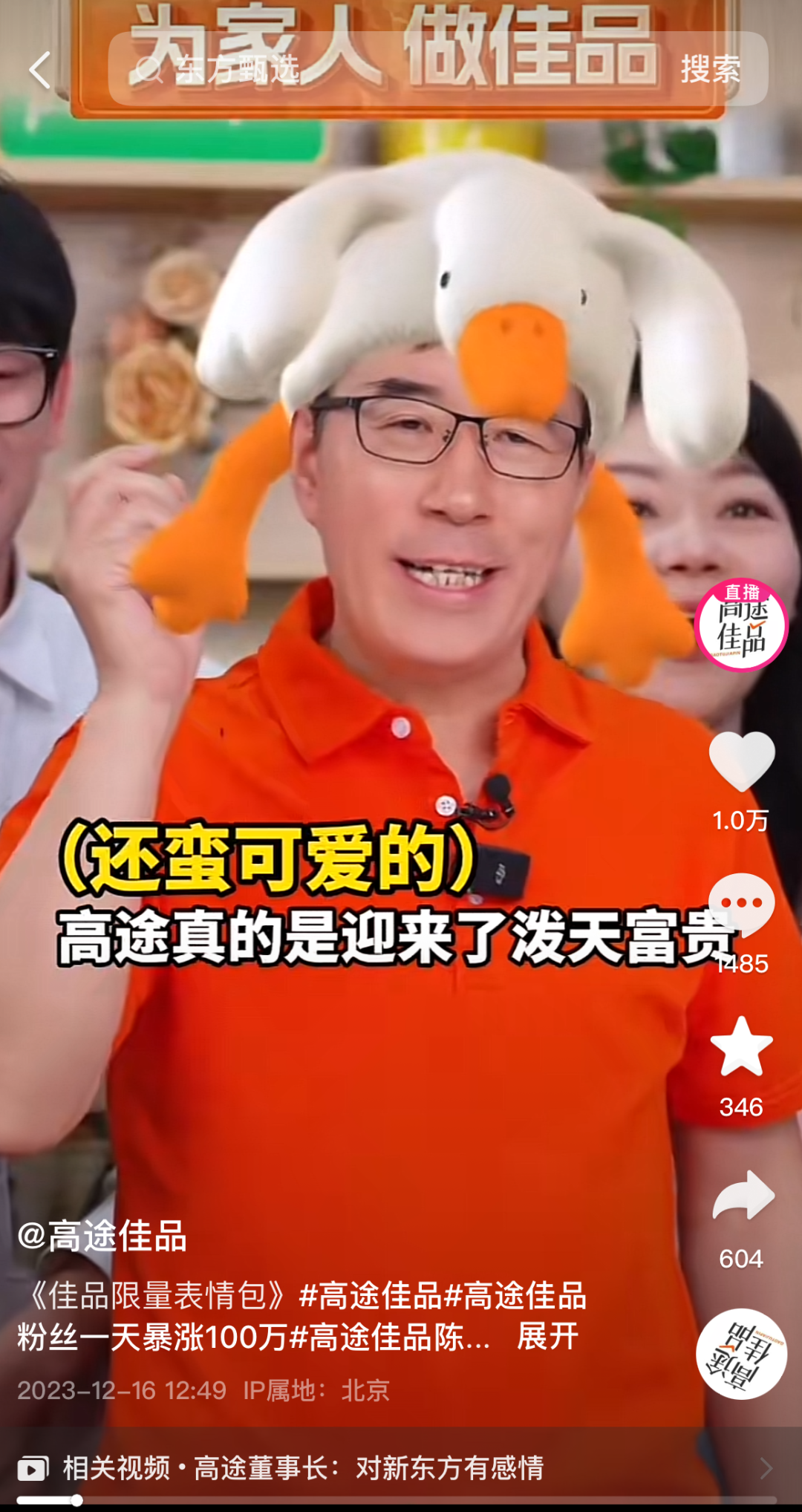 从这些角度来看,高途佳品简直就是东方甄选的镜像。高途佳品的主播很坦诚,表示成功的前提就是模仿,向优秀的人学习不寒碜。