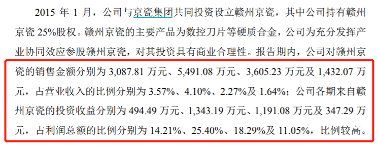早在2015年1月,海盛钨业与京瓷集团就共同出资设立了赣州京瓷,其中,海盛钨业投资成本2500万元,持股比例25%,京瓷集团持股75%。