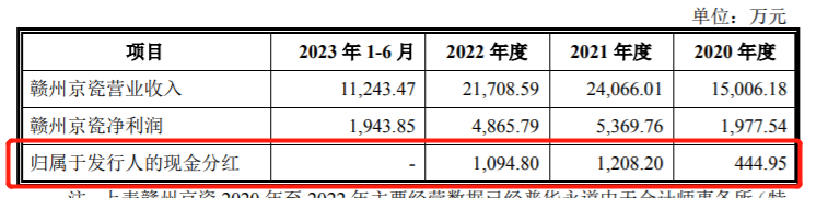 不仅如此,2020年-2022年,海盛钨业还从赣州京瓷处分别取得现金分红444.95万元、1208.20万元和1094.80万元。