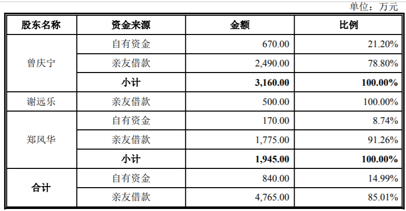 上述股东的资金来源包括其自有资金和亲友借款,三人各自向亲友借款金额合计高达4765万元。