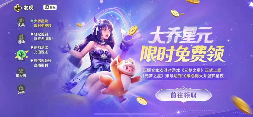 ▲图:《王者荣耀》与《元梦之星》进行了联动,用户同微信区或同QQ区的账号绑定,即可免费领取王者荣耀大乔星元皮肤