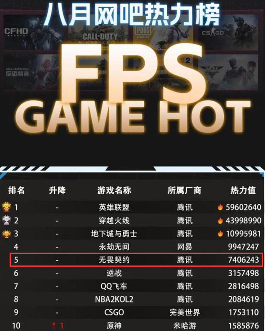 ▲图:《无畏契约》上线后,其在顺网的网吧热力榜上排名一直位居第五,没有达到预期
