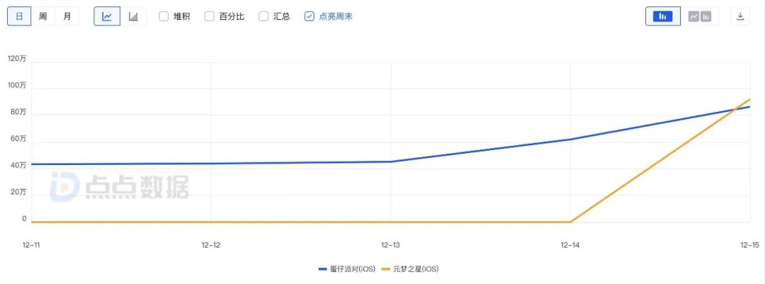 ▲图:根据点点数据预估,《元梦之星》首日iOS端收入略超《蛋仔派对》