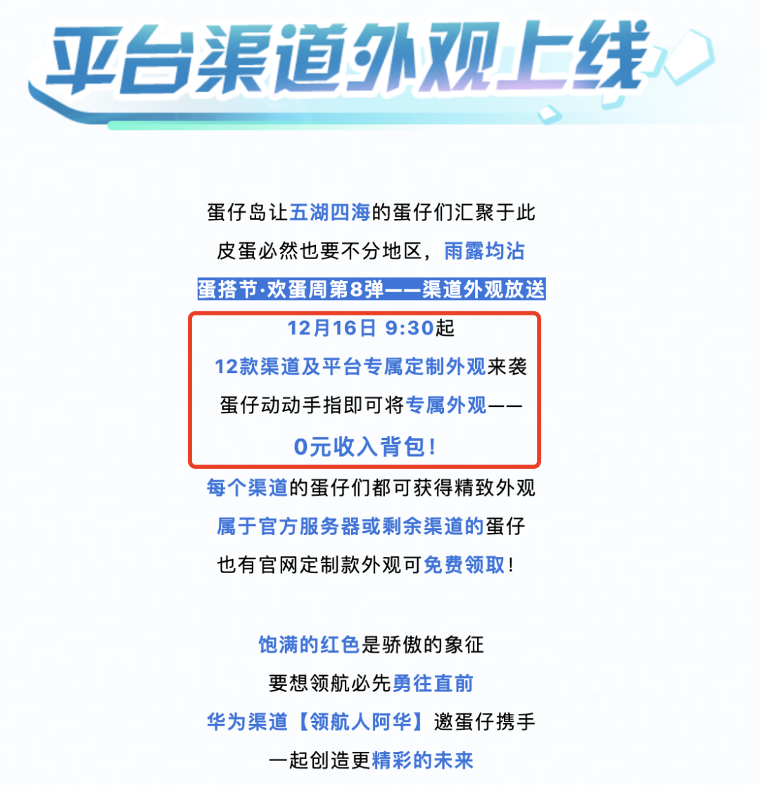 此外,《蛋仔》也十分注重硬核联盟、TapTap、好游快爆等渠道的影响力,玩家可以在12月16日,在上述渠道中下载后,可以领取渠道专属皮肤。网易《全明星街球派对》前脚刚与渠道“硬刚”,后脚《蛋仔》就紧紧抓住渠道流量......