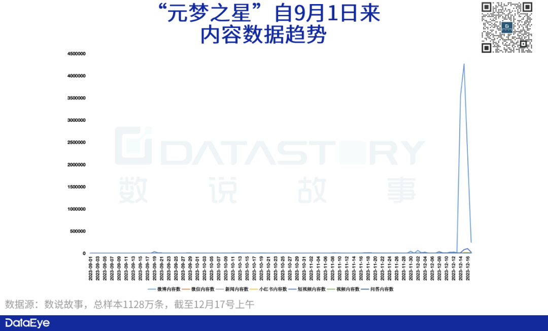 9月至12月17日,《元梦之星》国内全网内容数约为1128万条,其中微博内容最多,其次是短视频。