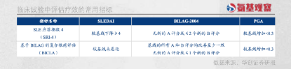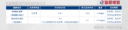 并且,疗效评估指标多为SRI-4或BICLA,仅反映了用药后相比基线患者疾病活动的改善,而未衡量“治愈或接近治愈”的指标,例如达到DORIS(系统性红斑狼疮缓解定义工作组)缓解或LLDAS(低疾病活动度)的患者比例。