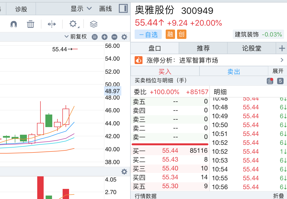 受消息刺激,奥雅股份周一(12月18日)早盘录得20%的“一字涨停”。截至发稿报55.44元/股,创22个月新高价,总市值33亿元。