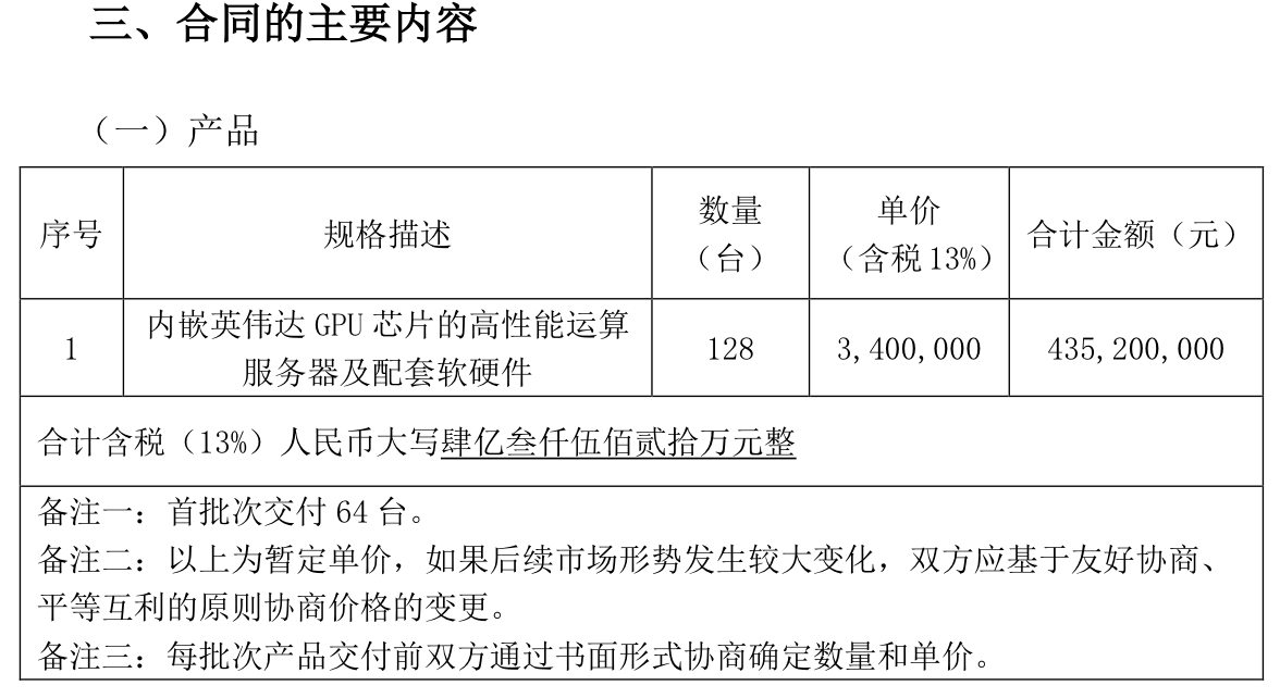 12月17日晚间,奥雅股份突发公告,公司12月17日召开第三届董事会第十七次会议,审议通过了《关于全资子公司拟签订〈算力服务器采购合同〉的议案》,董事会同意全资子公司深圳市奥创引擎数据服务有限公司(以下简称“奥创引擎”)根据公司战略规划,与供应商深圳市润信供应链有限公司签订《算力服务器采购合同》,拟采购128台内嵌英伟达GPU芯片的高性能运算服务器及配套软硬件,合同金额人民币43520万元(因产品单价可能波动,此为暂定总额)。同时,奥创引擎另与其他服务商达成合作,为公司所采购算力服务器的运营维护及网络安全提供支撑与服务。首次交付为64台,单价(含税13%)为340万元。服务器由英伟达授权的制造商质保,质保期为3年。