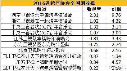 2015-2016跨年演唱会,四家卫视的成绩依次是:湖南卫视3.145%、浙江卫视2.714%、江苏卫视2.233%,东方卫视1.506%——排名第四位的东方卫视,是唯一出现跨年收视上涨的一家,涨幅达15.8%;身为江湖老大哥的湖南卫视,居然跌了三分之一?