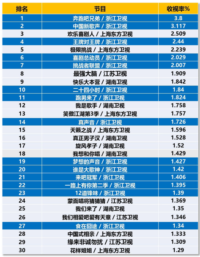 连续十四年,都能站上卫视冠军席位,保持多年的江湖霸主地位,实属不易。直到十月,湖南卫视才凭借《麻雀》反超浙江卫视,而领衔优势被缩小到不足0.01%。