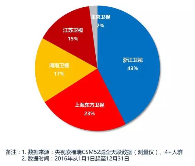 仅是透过一台跨年晚会,卫视江湖的排名就会被洗牌吗?当然不会。但是旁观者倒是可以从中看到一些端倪,甚至从中复盘湖南、浙江、东方、江苏四家在2016的全年竞争力。