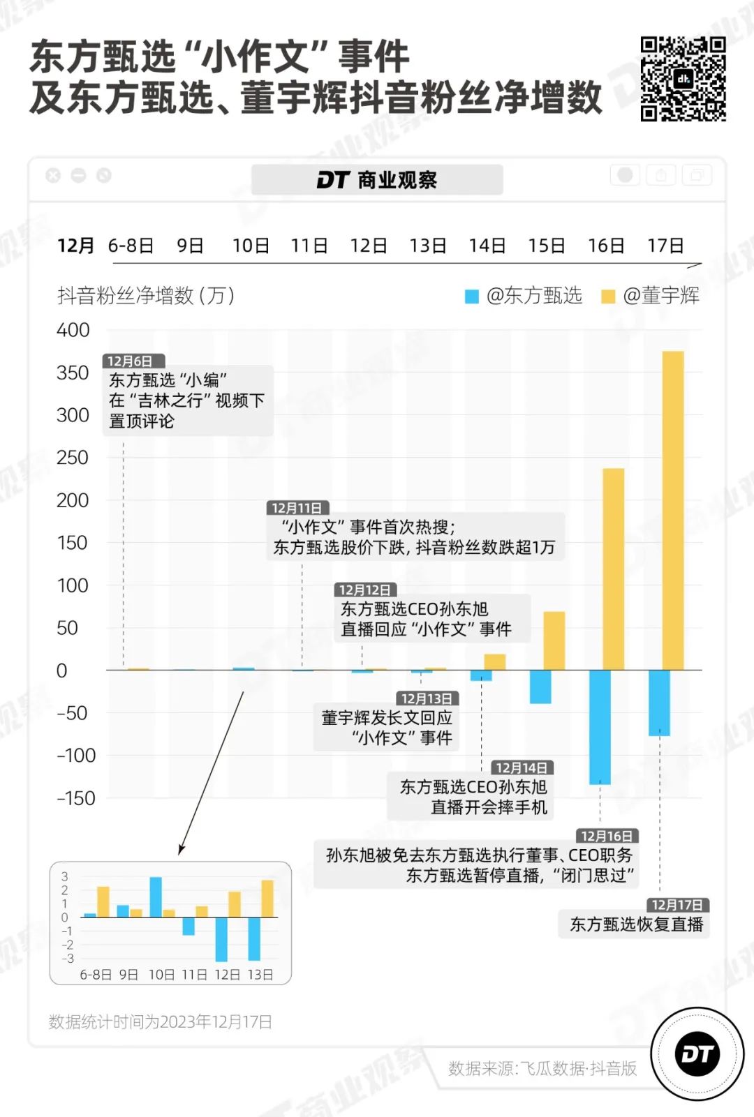 自从12月11日“小作文事件”登上热搜之后,东方甄选当天就掉粉超过1万。