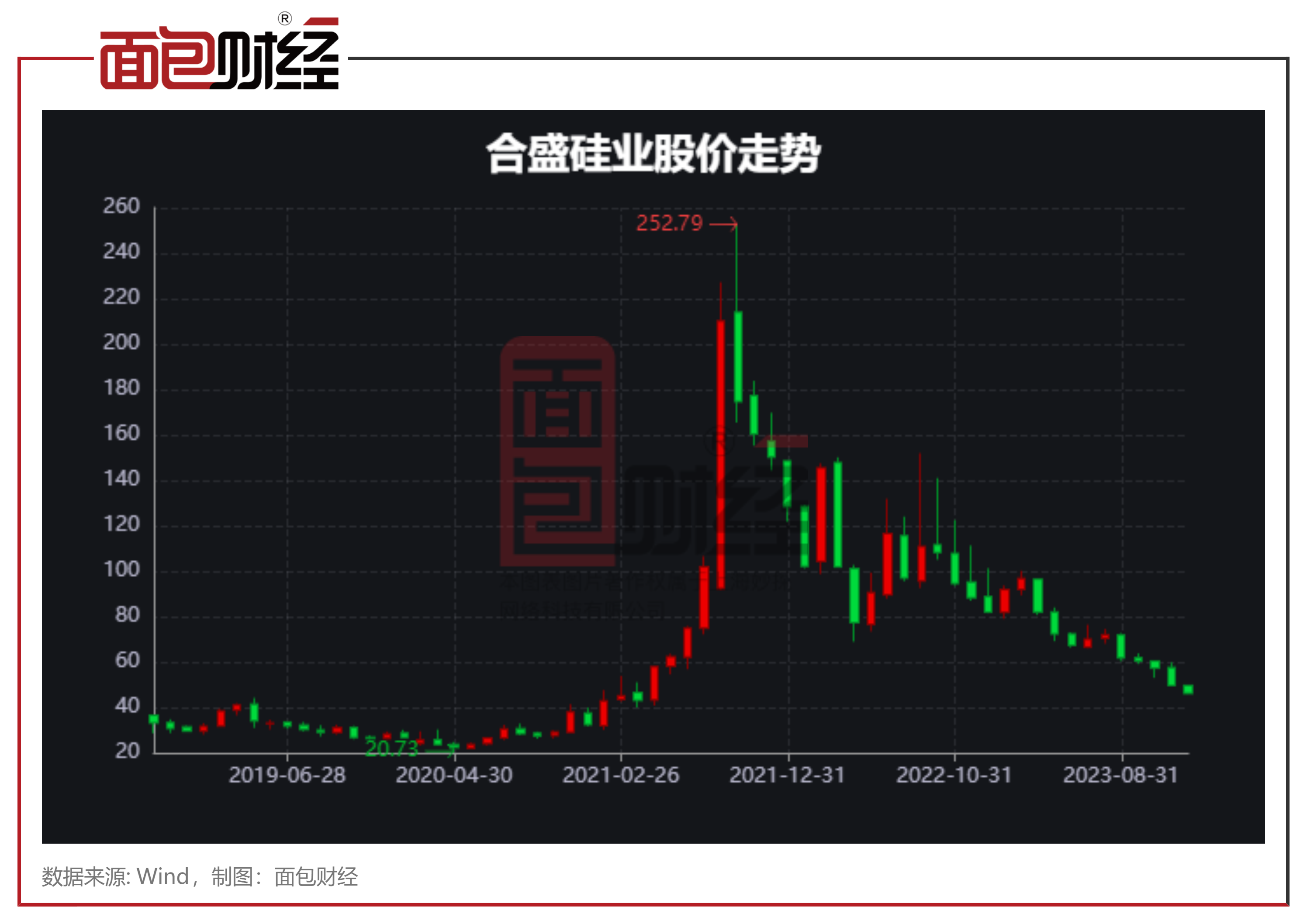 2021年9月,合盛硅业股价曾最高达到252.79元/股(前复权,下同),总市值最高超过2600亿元。