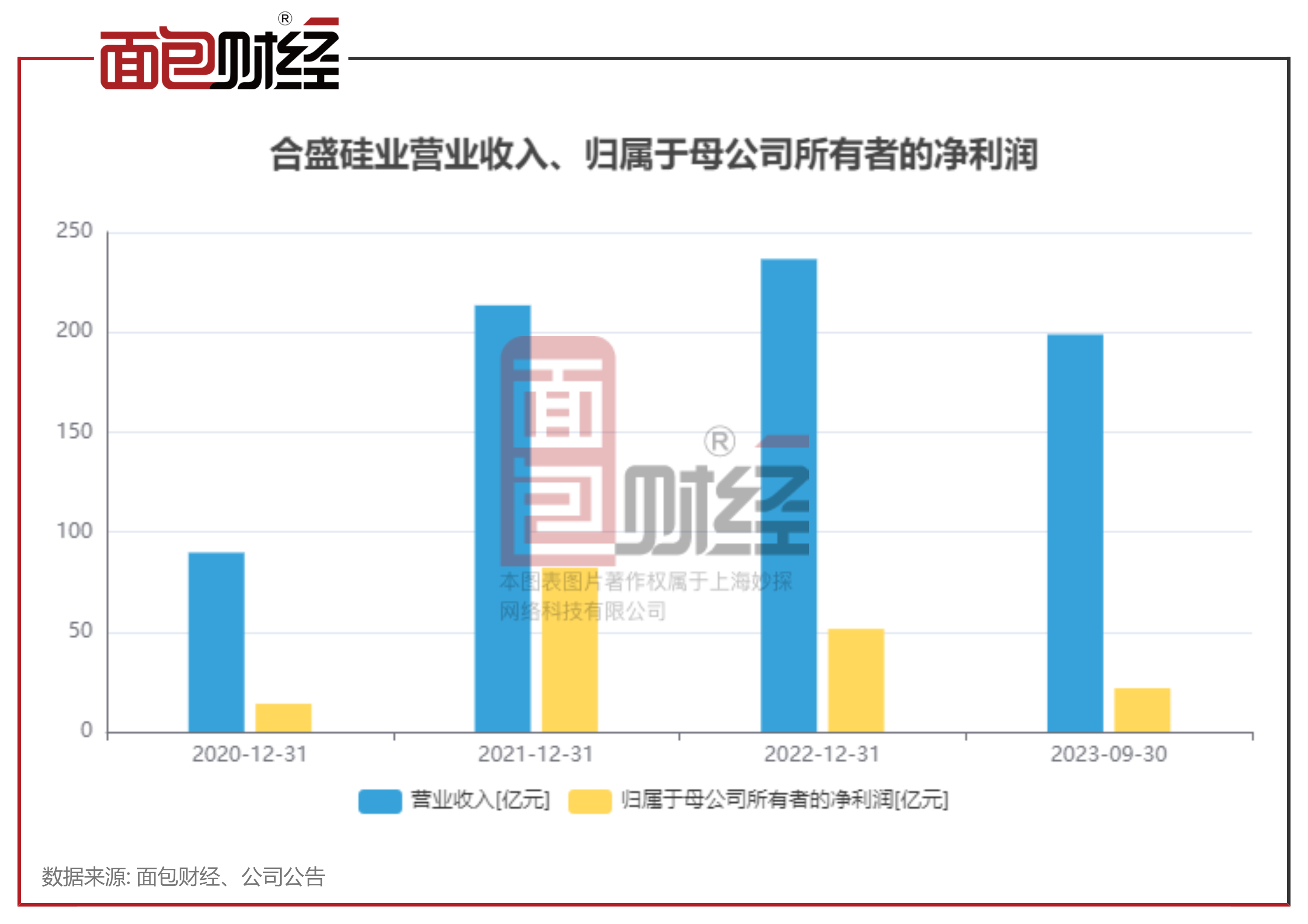 数据显示,2022年,合盛硅业营收同比增长10.62%,但归母净利润同比下降37.39%。2023年前三季度,公司营收同比增长8.81%,归母净利润同比下降52.03%。