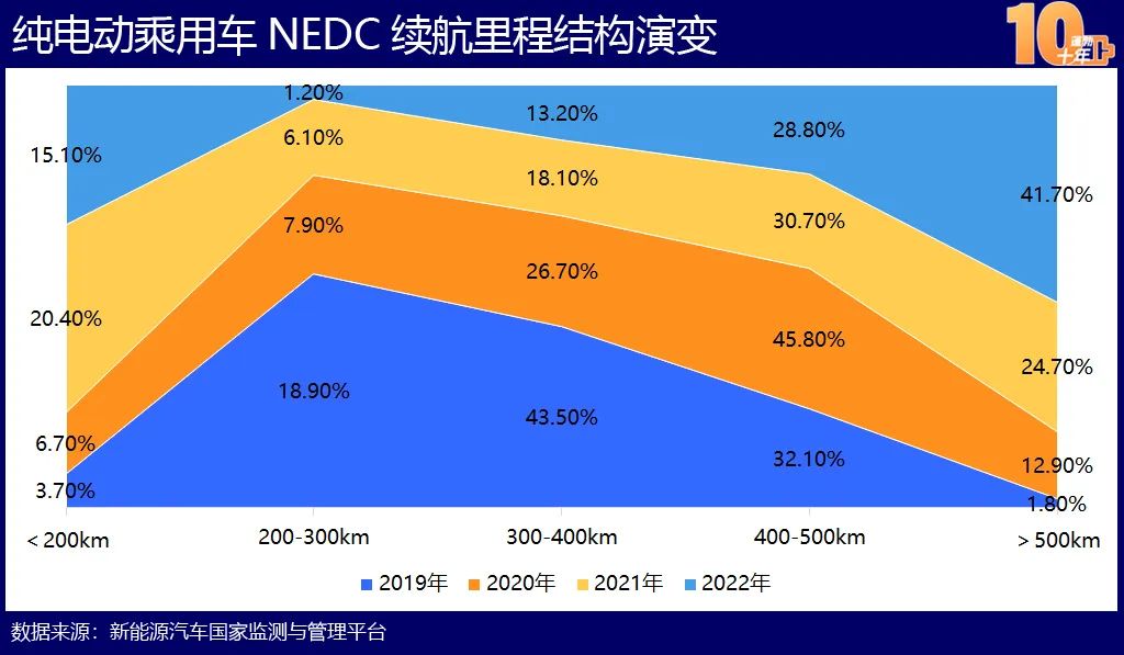 而目前依然占有6成市场的纯电动车的进化方向是长续航、快充、换电,续航超过500公里的已经成为主流,长续航已经不是多么值得渲染的卖点,电池安全、底盘技术、智能驾驶、乃至舒适性配置成为新的比拼点。