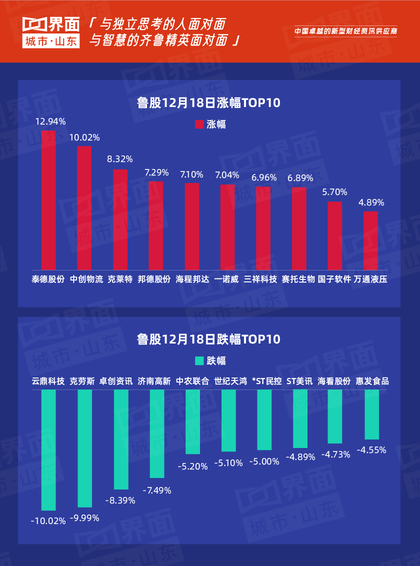 12月18日,山东61只个股上涨,3股持平,243只下跌。
