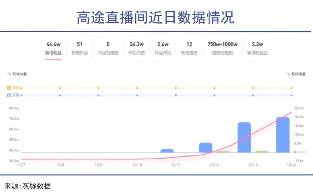 12月14日晚,高途直播间粉丝破100万,GMV突破千万,甚至一度排在抖音带货总榜头名,日均带货销售额较前一个月的平均值翻了100倍。公司股价四天飙升近73%。