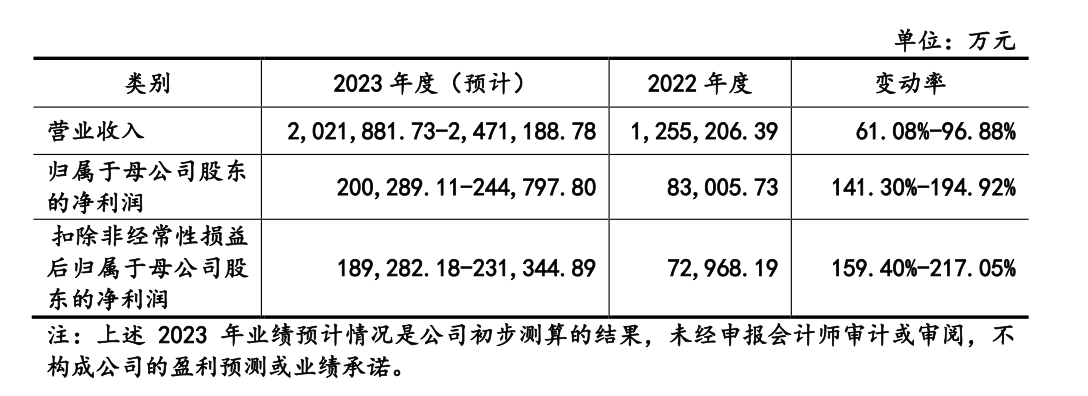 但界面新闻记者注意到,与此前招股书相比,中润光能在正式上会稿中下调了今年的收入和盈利预期。最新数据显示,中润光能预计2023年实现营收202.18亿-247.1亿元,同比增长61.08%-96.88%;净利润20.02亿-24.48亿元,同比增长141.30%-194.92%,较此前下调幅度超一成。