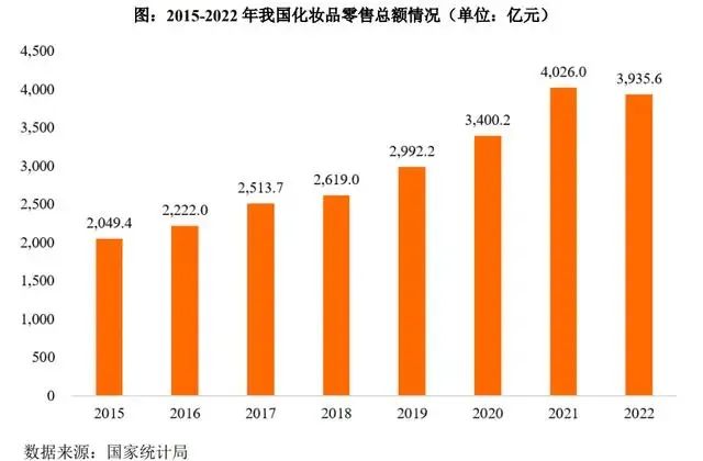 根据国家统计局数据,2021年我国化妆品零售总额已突破4000亿元,中国也连续多年是全球第二大化妆品消费国。