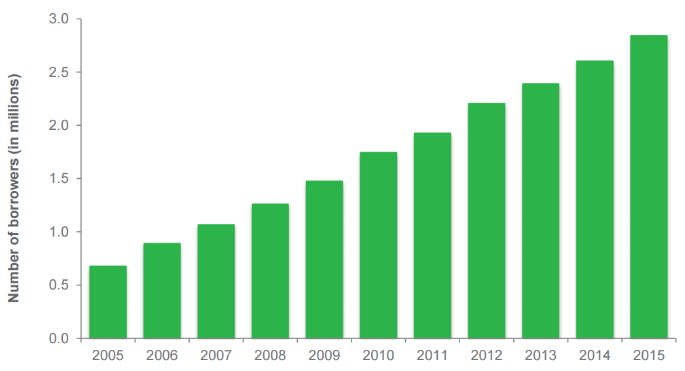 消费者金融保护局援引纽约联储的数据称,60岁以上(含60岁)的学生贷款借款人数量从2005年的70万增加到2015年的280万。承担学生贷款的老年人的数量增速比其他任何年龄群都快,并且他们可能面临困难。报告指出,65岁(含65岁)以上的联邦学生贷款借款人中,有将近40%出现违约。