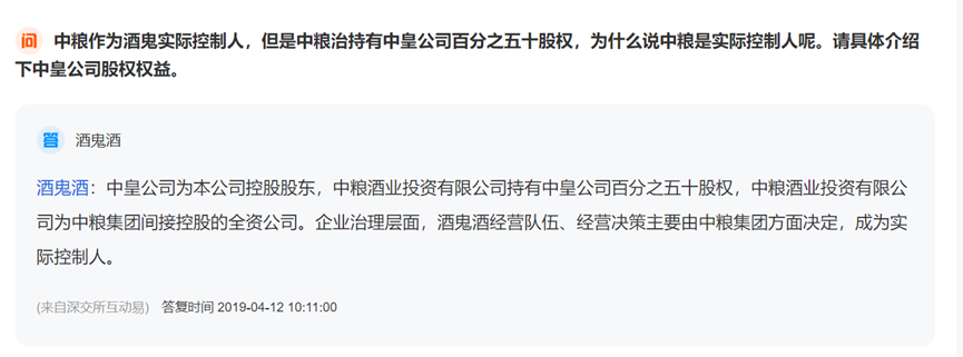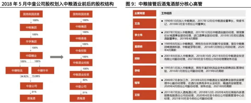 中粮酒业是中粮集团间接控股的全资子公司,持有酒鬼酒(000799.SZ)的控股股东中皇公司50%的股权,这使得中粮集团成为了酒鬼酒的实控人。在企业治理层面上,酒鬼酒的经营队伍和决策权也主要由中粮集团方面决定。
