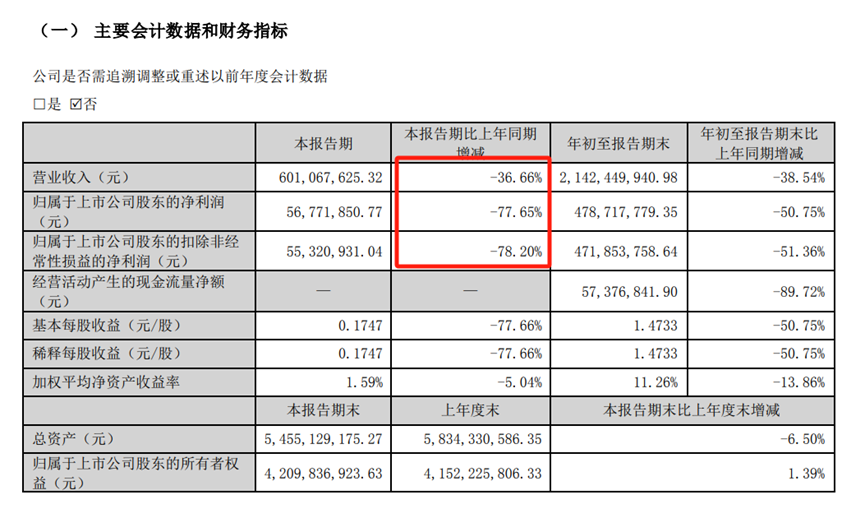 酒鬼酒2023年三季报显示,公司主营收入为21.42亿元,同比下降38.54%;归母净利润为4.79亿元,同比下降50.75%。