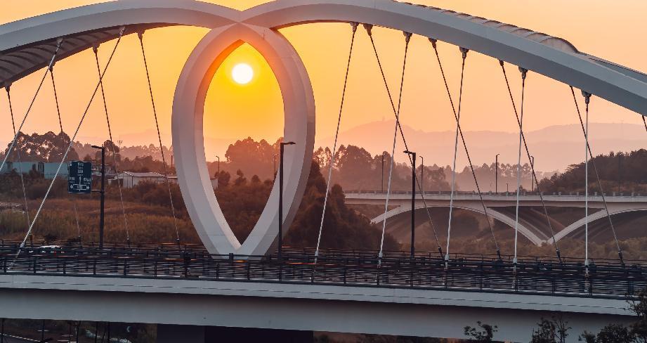 科智路跨猫猫沟大桥以“智谷”及“科学城”为设计背景,围绕“光谷流苏,水韵洞天”的设计理念,打造生态与科技相结合的未来智桥,已成为天府新区的片区焦点和地标“打卡地”。