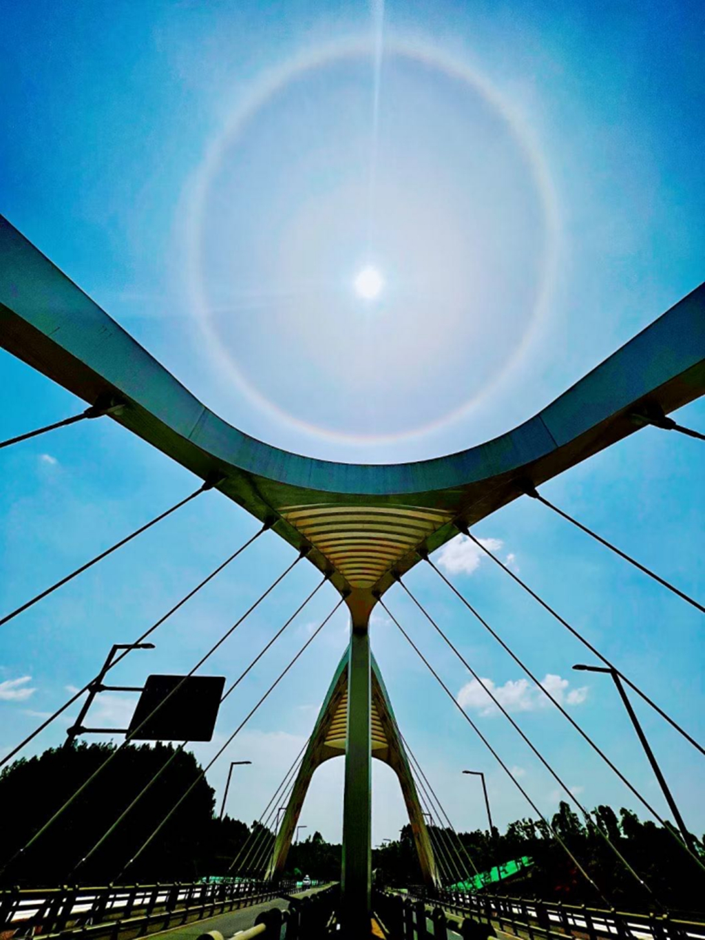 桥梁结构外形新颖独特,其结构形式与外观目前为全国首创。