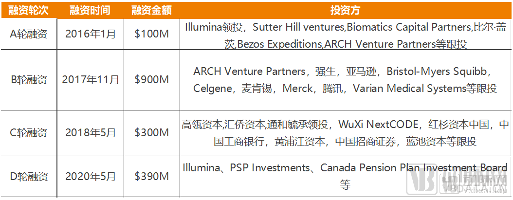 2017年11月,Grail完成9亿美元B轮融资,投资者包括强生、亚马逊、麦肯锡、腾讯等知名企业。2018年5月,Grail完成3亿美元C轮融资,投资者包括高瓴、红杉、汇桥、通和毓承、工商银行等。