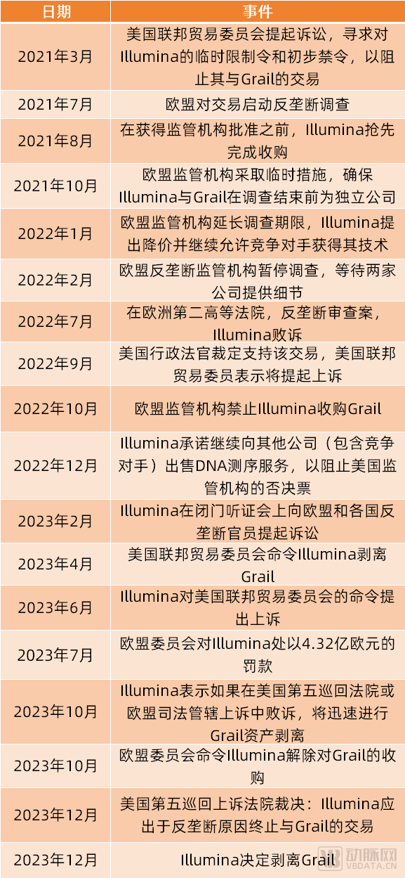 此后,该交易分别吸引了美国及欧盟监管机构的注意。2021年3月,美国联邦贸易委员会向美国哥伦比亚特区地区法院提起诉讼,寻求对Illumina的临时限制令和初步禁令,以阻止其与Grail公司的交易。