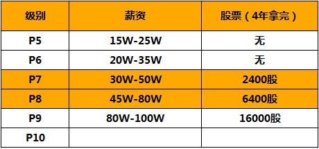 在薪资方面,阿里的非管理岗分为10级,其中P6、P7、P8需求量最大,也是阿里占比最大的级别。对应薪资如下: