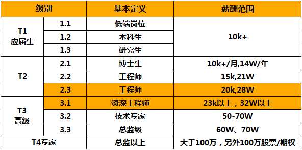 每一级之间又分为3个子级, T4基本上都是总监级了,也不排除有T3-3的总监,因为T4非常难晋级。