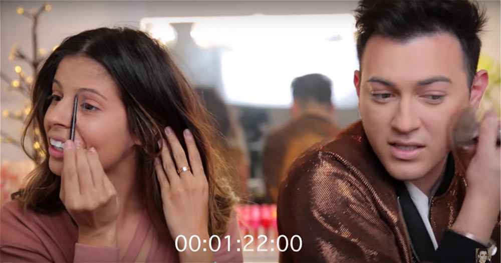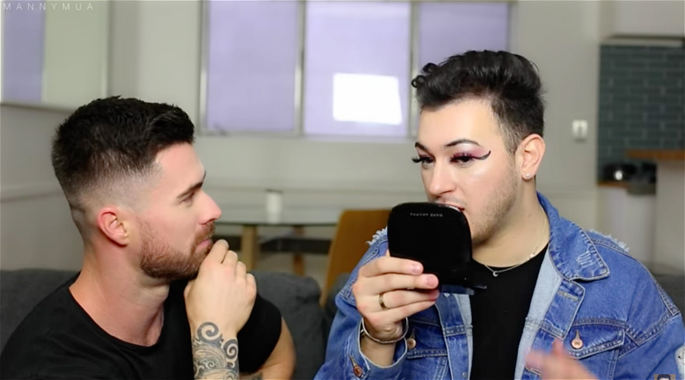 若是从专业角度来说,Manny Gutierrez和女博主的化妆技巧并没有太大差别。这位早年在MAC和Sephora工作的柜员用起刷子、水滴粉扑来得心应手。大部分男性观众完全可以参考视频前半段——上粉底、遮瑕、修颜、画眉毛,高阶选手也能参考眼影、眼线、睫毛、口红部分。