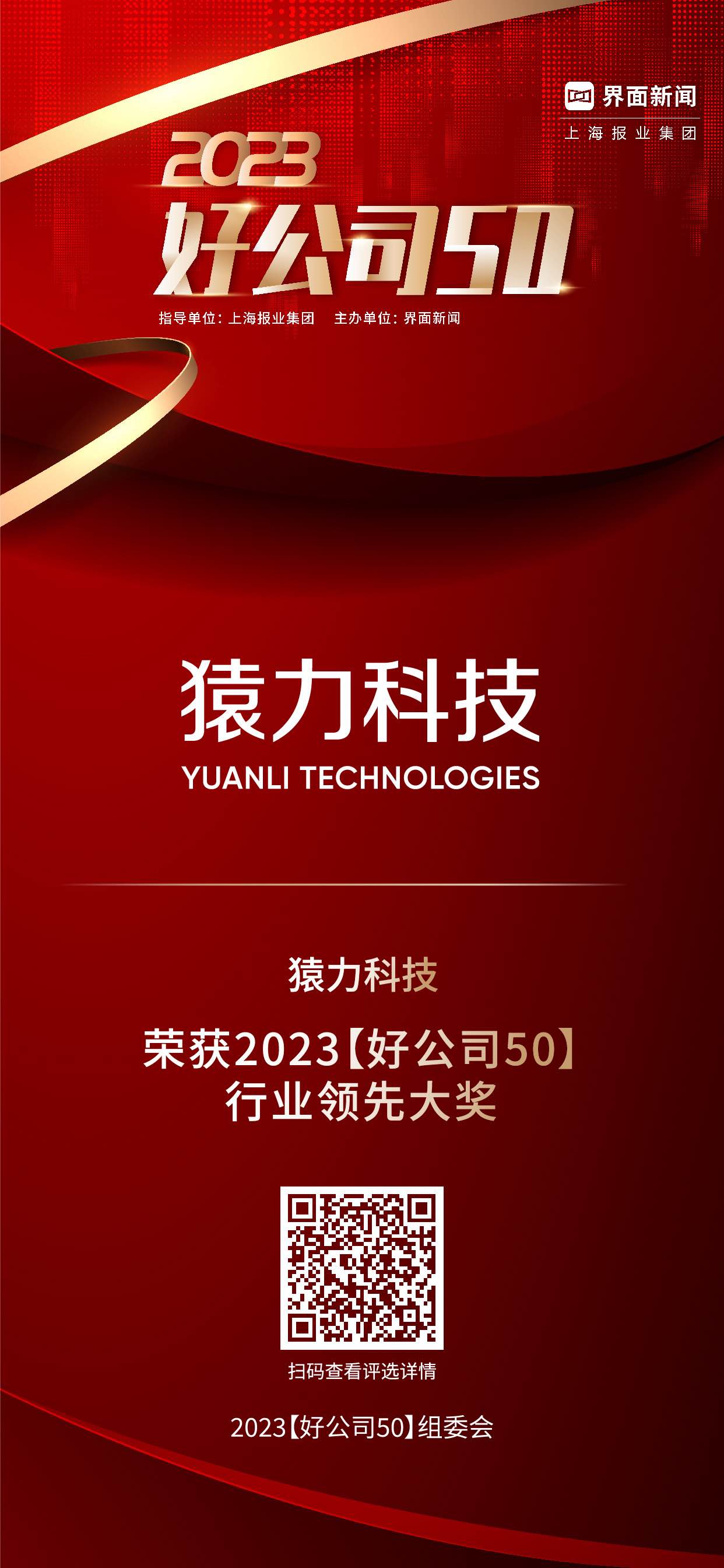 猿力科技荣获了【2023好公司50——行业领先大奖】。