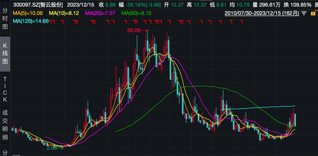 截至12月15日收盘,智云股份报8.88元/股,较2018年初下降近70%。