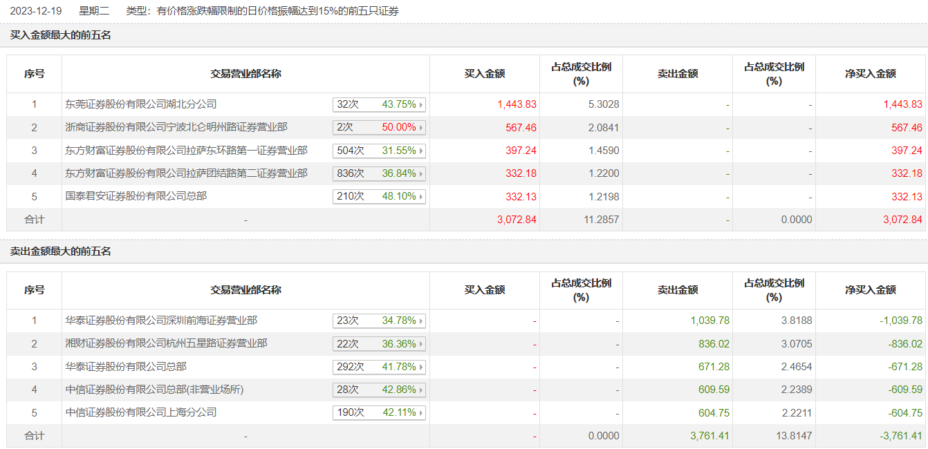 科新发展12月19日跌停,全天换手率14.54%,成交额2.72亿元,振幅17.08%。龙虎榜数据显示,营业部席位合计净卖出688.58万元。上交所公开信息显示,当日该股因日振幅值达17.08%上榜,营业部席位合计净卖出688.58万元。