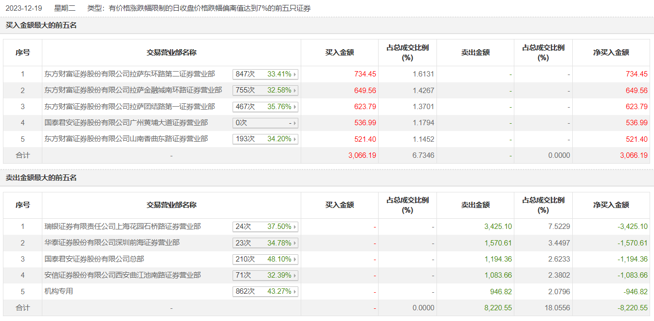 欧亚集团12月19日跌停,全天换手率19.67%,成交额4.55亿元,振幅7.17%。龙虎榜数据显示,机构净卖出946.82万元,营业部席位合计净卖出4207.54万元。上交所公开信息显示,当日该股因日跌幅偏离值达-10.07%上榜,机构专用席位净卖出946.82万元。