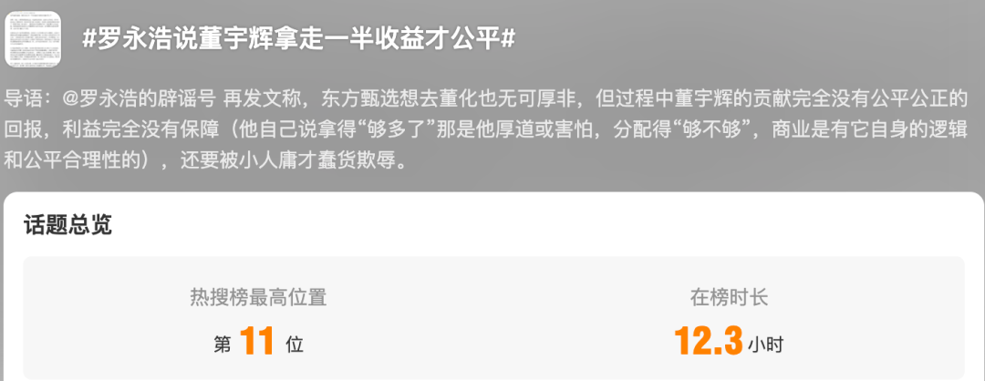 在此次“小作文”风波里,罗永浩不止一次公开声援董宇辉,甚至称其该拿到东方甄选收益的一半。