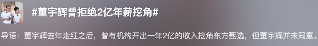 更有媒体爆料称,董宇辉曾拒绝过年薪2亿的挖角。