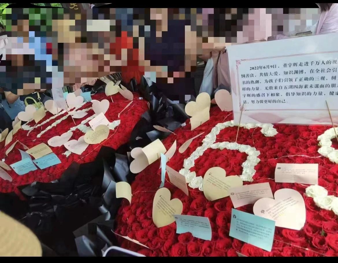 今年6月9日,是董宇辉出圈一周年的日子,东方甄选为董宇辉在四川举办了一次专场直播。许多丈母娘们,为了董宇辉特意赶到了四川。她们为董宇辉买了1314朵玫瑰花,玫瑰花上拼出了“69”和“DYH”的字符,还放满了丈母娘们写给董宇辉的小卡片。