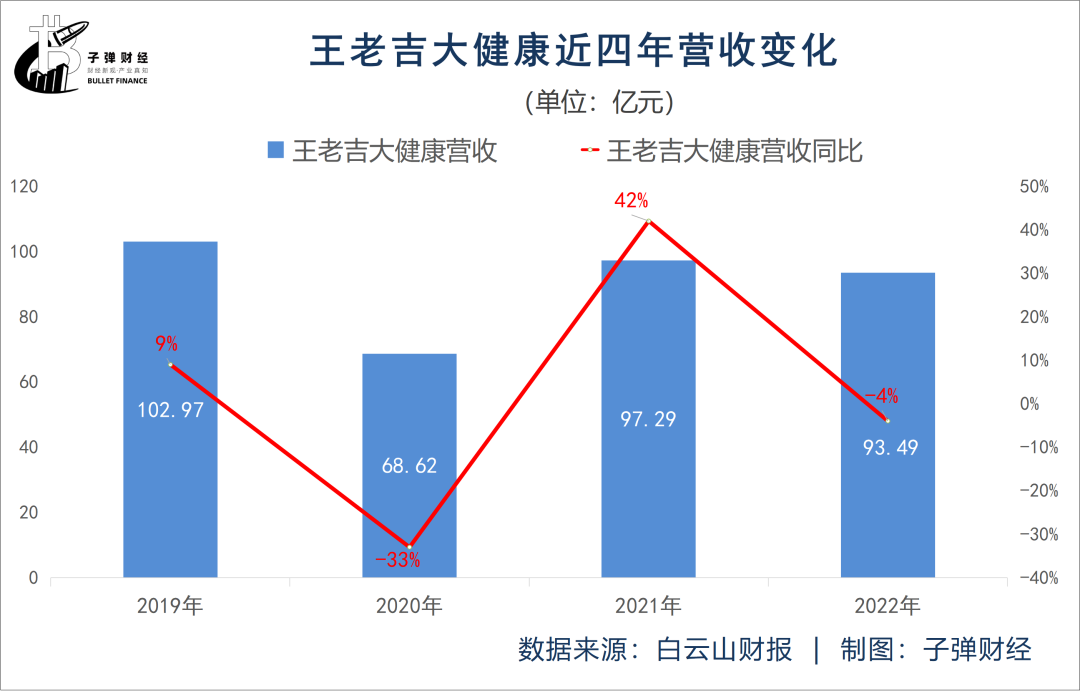 从业绩来看,王老吉大健康公司的营收已从2019年的102.96亿元下滑至2022年的93.49亿元。
